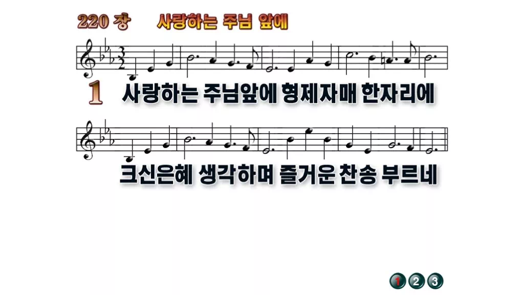 220장 - 사랑하는 주님 앞에 찬송가의 배경없는 PPT 악보입니다.