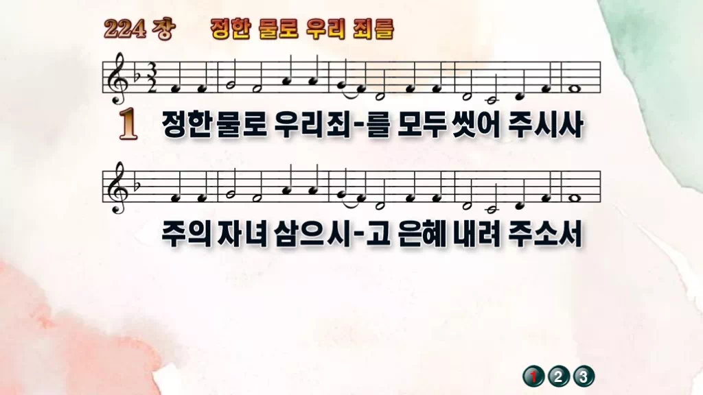 224장 - 정한 물로 우리 죄를 찬송가의 PPT 악보입니다.