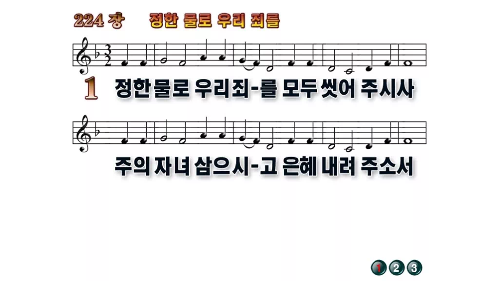 224장 - 정한 물로 우리 죄를 찬송가의 배경없는 PPT 악보입니다.