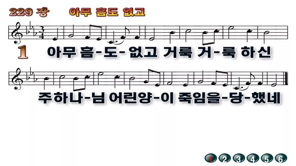 229장 - 아무 흠도 없고 찬송가의 배경없는 PPT 악보입니다.