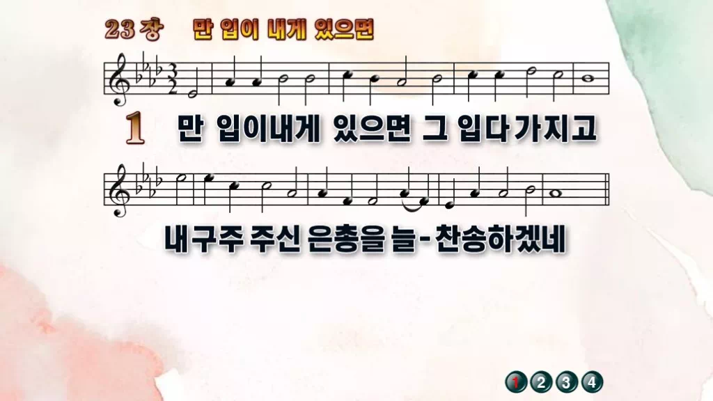 23장 - 만 입이 내게 있으면 찬송가의 PPT 악보입니다.
