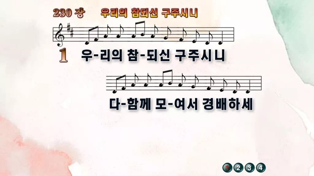 230장 - 우리의 참되신 구주시니 찬송가의 PPT 악보입니다.