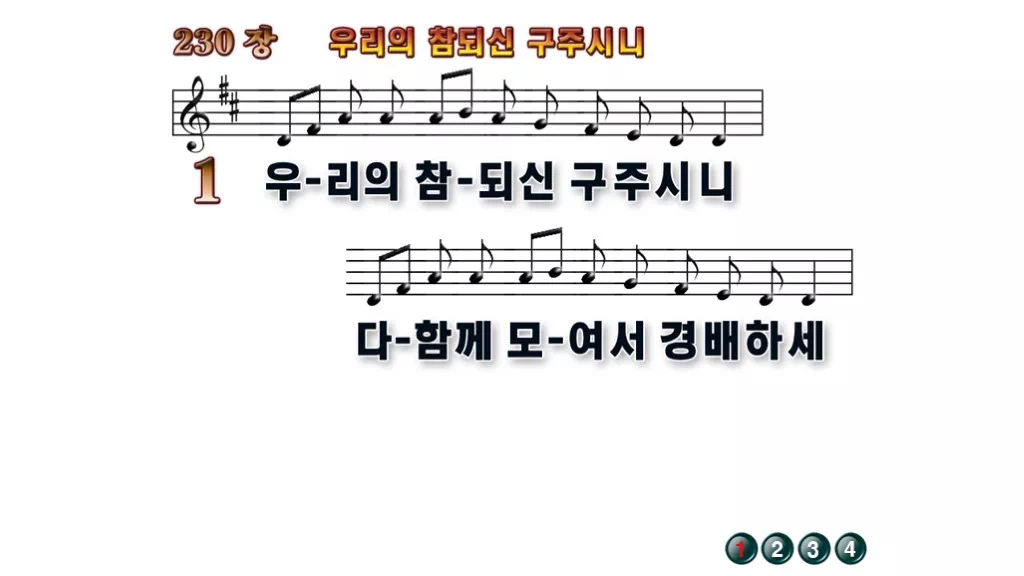 230장 - 우리의 참되신 구주시니 찬송가의 배경없는 PPT 악보입니다.