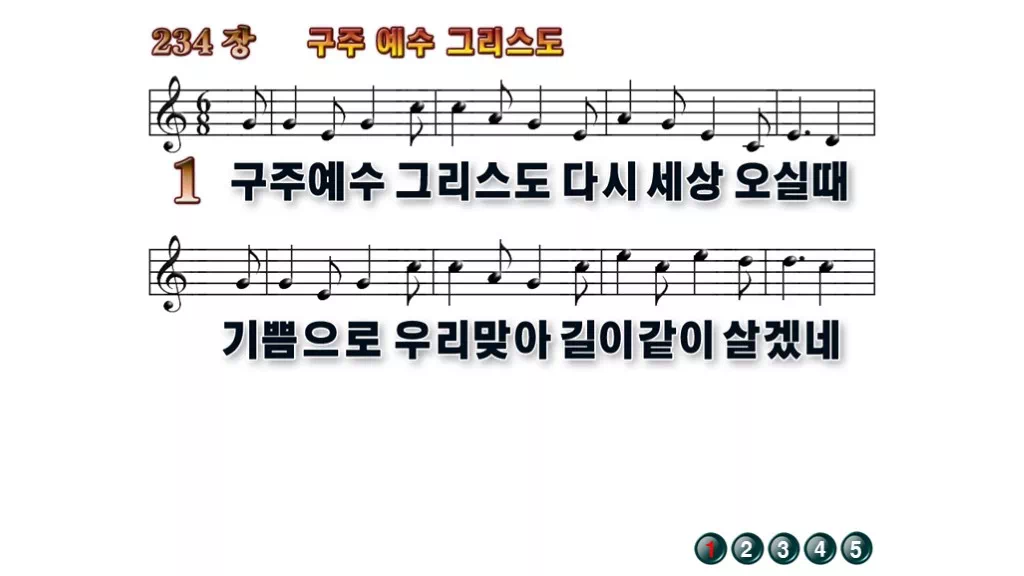 234장 - 구주 예수 그리스도 찬송가의 배경없는 PPT 악보입니다.