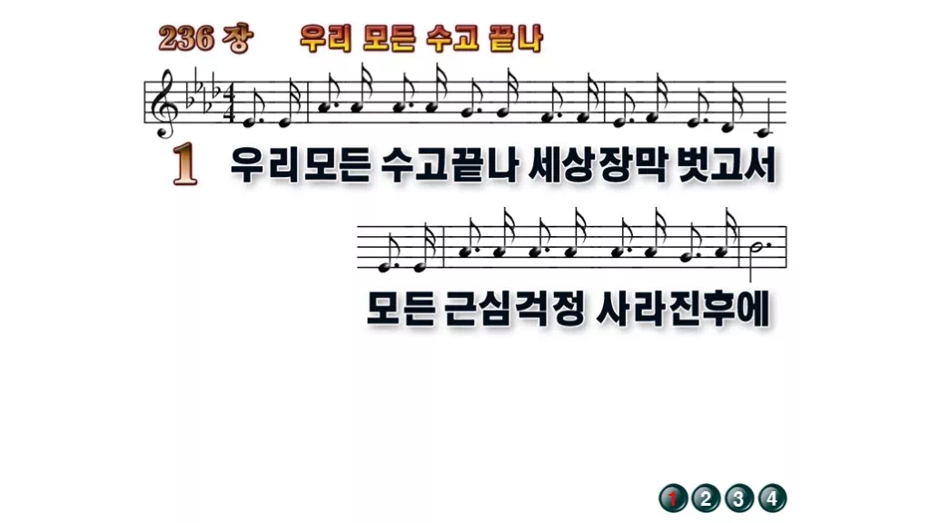 236장 - 우리 모든 수고 끝나 찬송가의 배경없는 PPT 악보입니다.