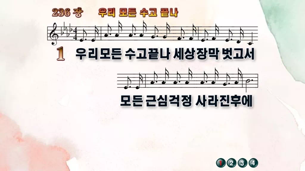 236장 - 우리 모든 수고 끝나 찬송가의 PPT 악보입니다.
