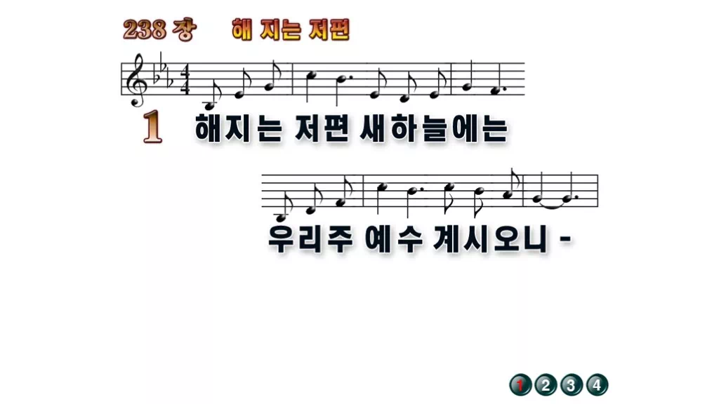 238장 - 해 지는 저편 찬송가의 배경없는 PPT 악보입니다.