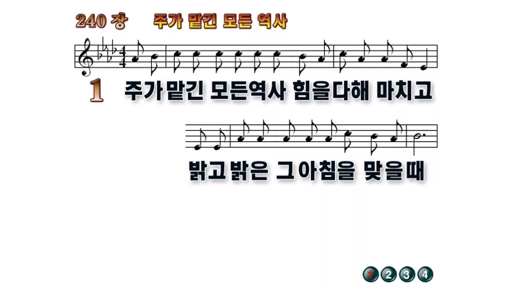 240장 - 주가 맡긴 모든 역사 찬송가의 배경없는 PPT 악보입니다.
