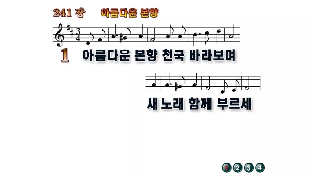 241장 - 아름다운 본향 찬송가의 배경없는 PPT 악보입니다.