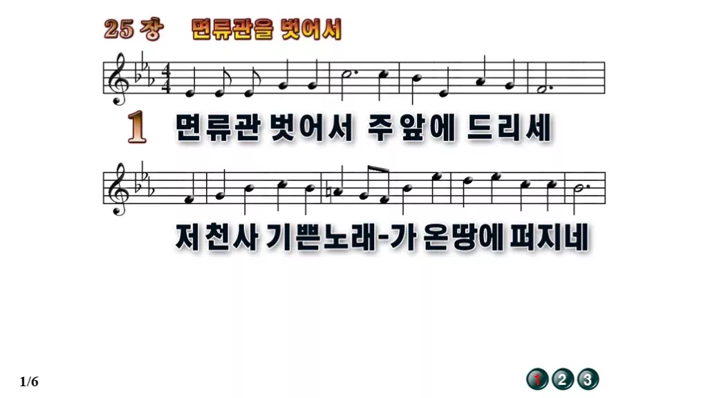 25장 - 면류관 벗어서 찬송가의 배경없는 PPT 악보입니다.