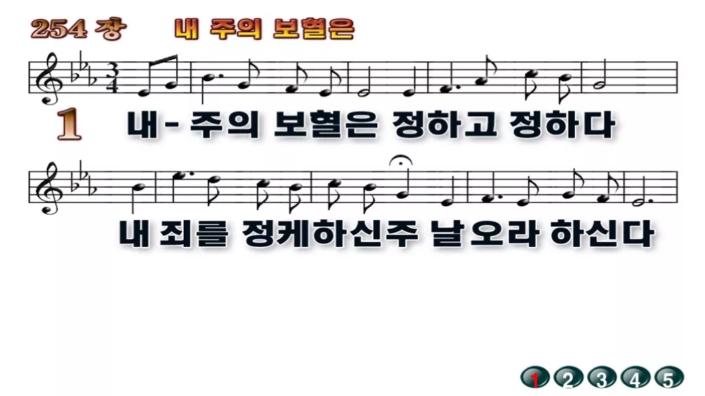 254장 - 내 주의 보혈은 찬송가의 배경없는 PPT 악보입니다.