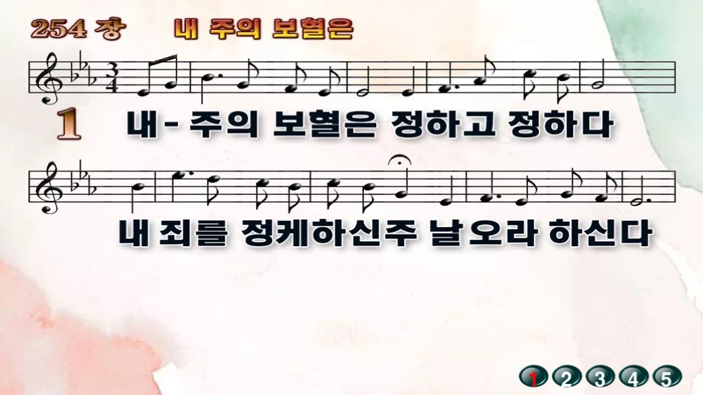 254장 - 내 주의 보혈은 찬송가의 PPT 악보입니다.