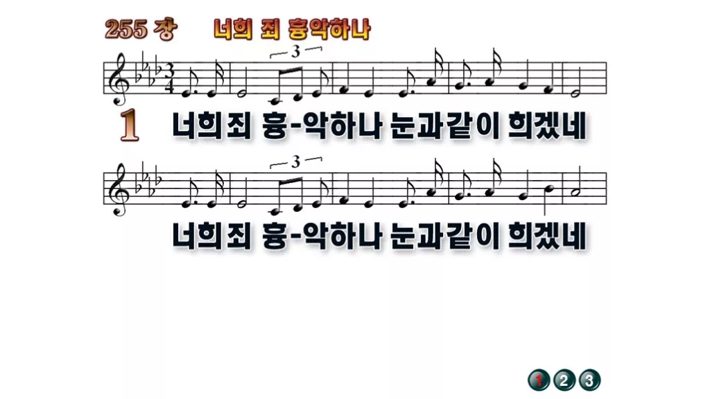 255장 - 너희 죄 흉악하나 찬송가의 배경없는 PPT 악보입니다.
