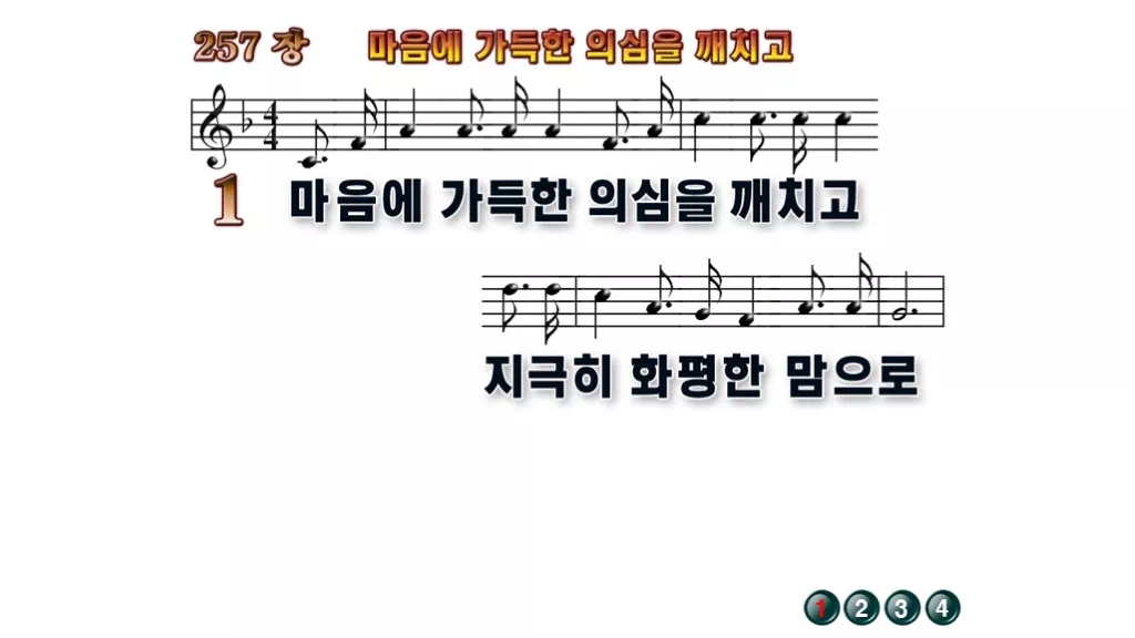 257장 - 마음에 가득한 의심을 깨치고 찬송가의 배경없는 PPT 악보입니다.