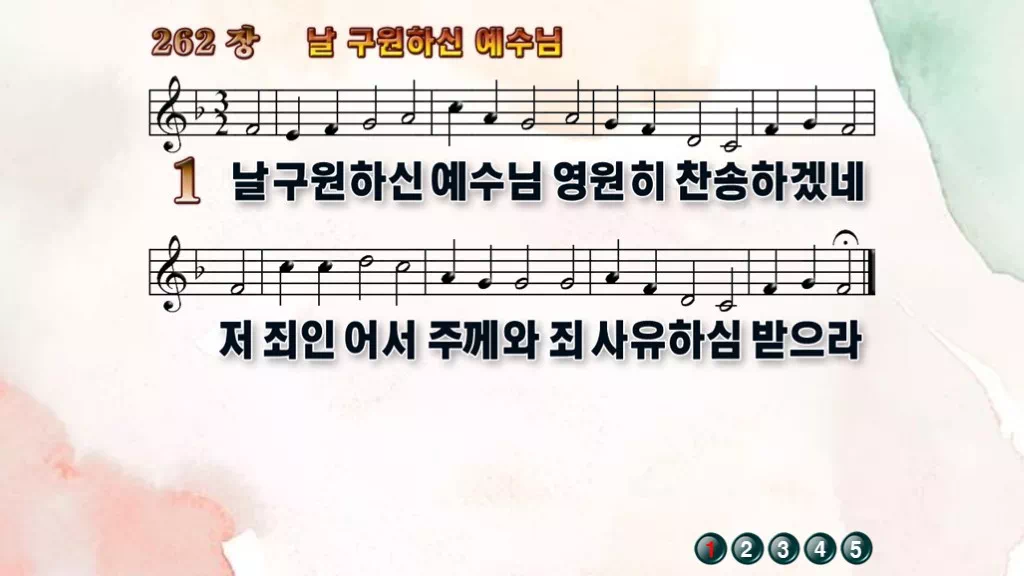 262장 - 날 구원하신 예수님 찬송가의 PPT 악보입니다.