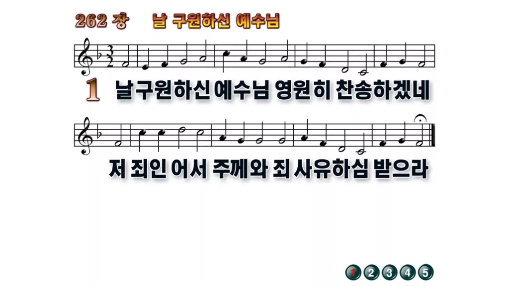262장 - 날 구원하신 예수님 찬송가의 배경없는 PPT 악보입니다.