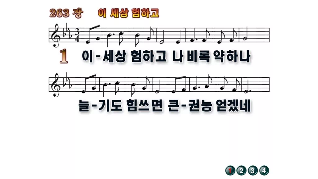 263장 - 이 세상 험하고 찬송가의 배경없는 PPT 악보입니다.
