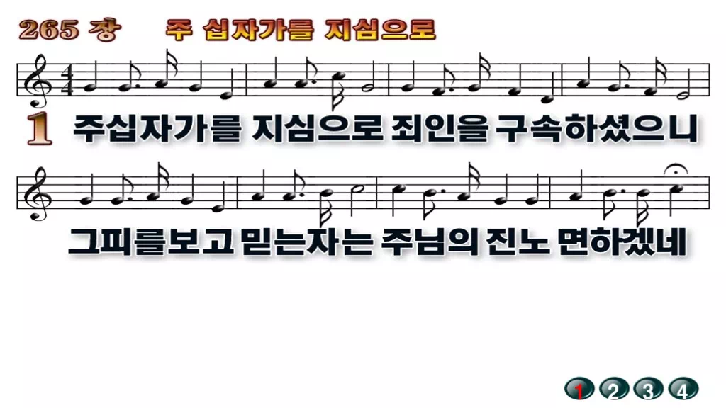 265장 - 주 십자가를 지심으로 찬송가의 배경없는 PPT 악보입니다.