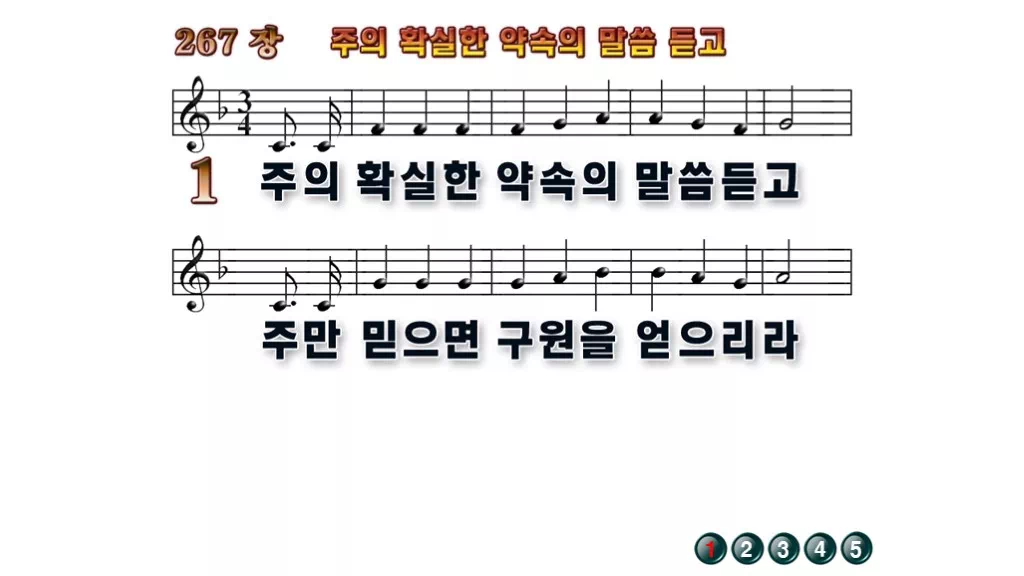 267장 - 주의 확실한 약속의 말씀 듣고 찬송가의 배경없는 PPT 악보입니다.