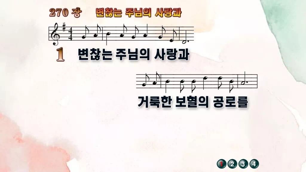 270장 - 변찮는 주님의 사랑과 찬송가의 PPT 악보입니다.