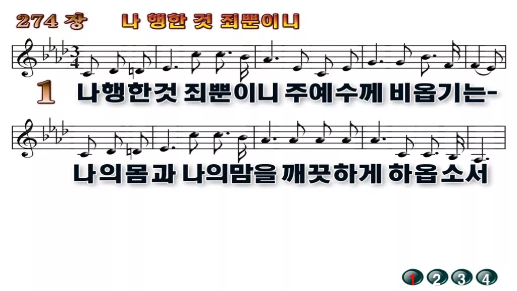 274장 - 나 행한 것 죄뿐이니 찬송가의 배경없는 PPT 악보입니다.