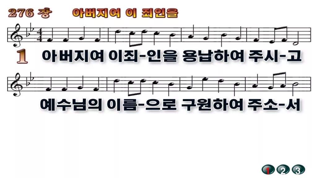 276장 - 아버지여 이 죄인을 찬송가의 배경없는 PPT 악보입니다.