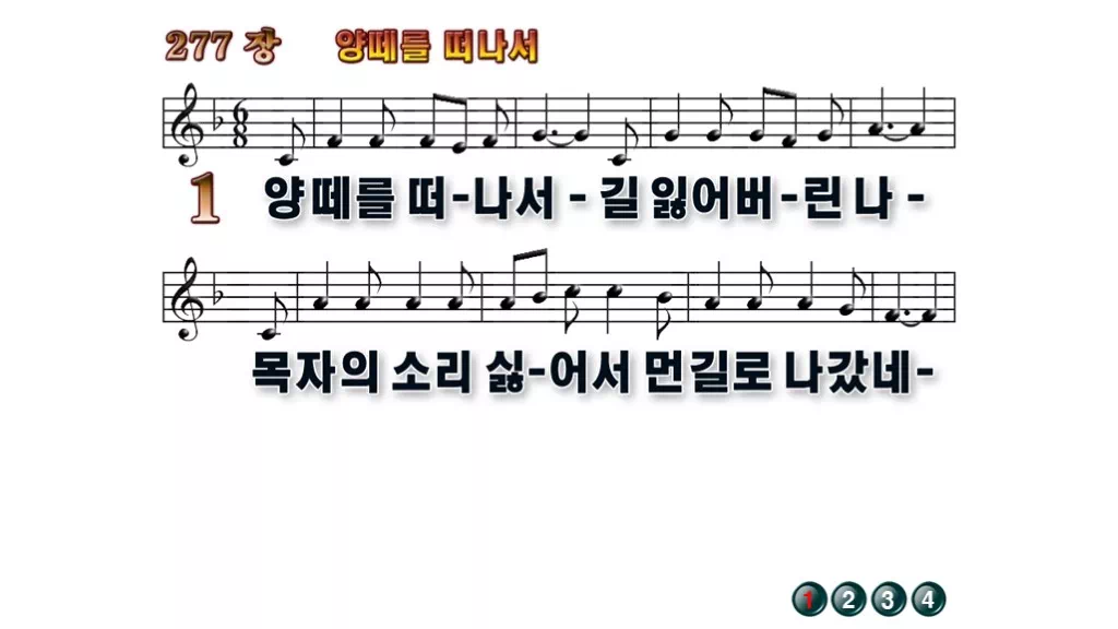277장 - 양떼를 떠나서 찬송가의 배경없는 PPT 악보입니다.