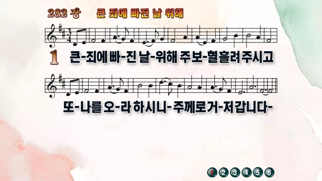 282장 - 큰 죄에 빠진 날 위해 찬송가의 PPT 악보입니다.
