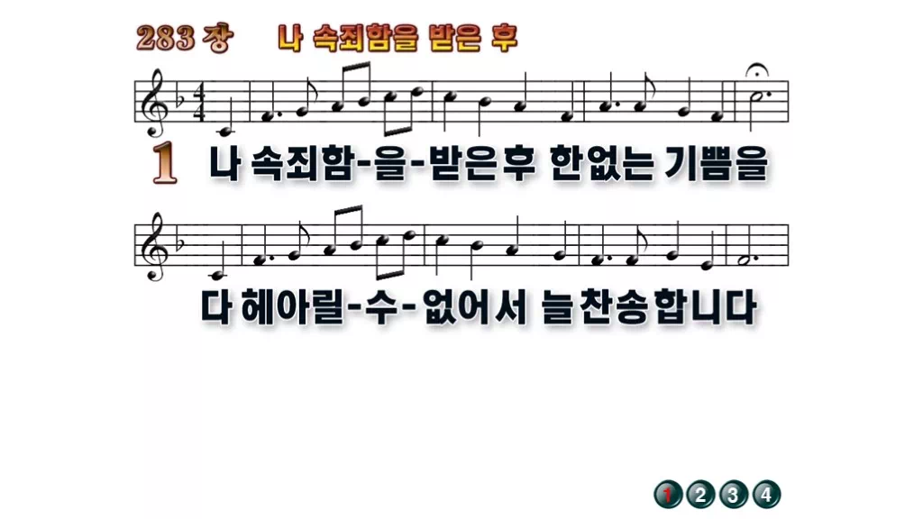 283장 - 나 속죄함을 받은 후 찬송가의 배경없는 PPT 악보입니다.