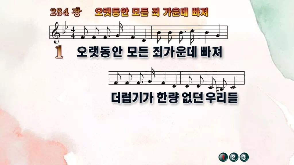 284장 - 오랫동안 모든 죄 가운데 빠져 찬송가의 PPT 악보입니다.