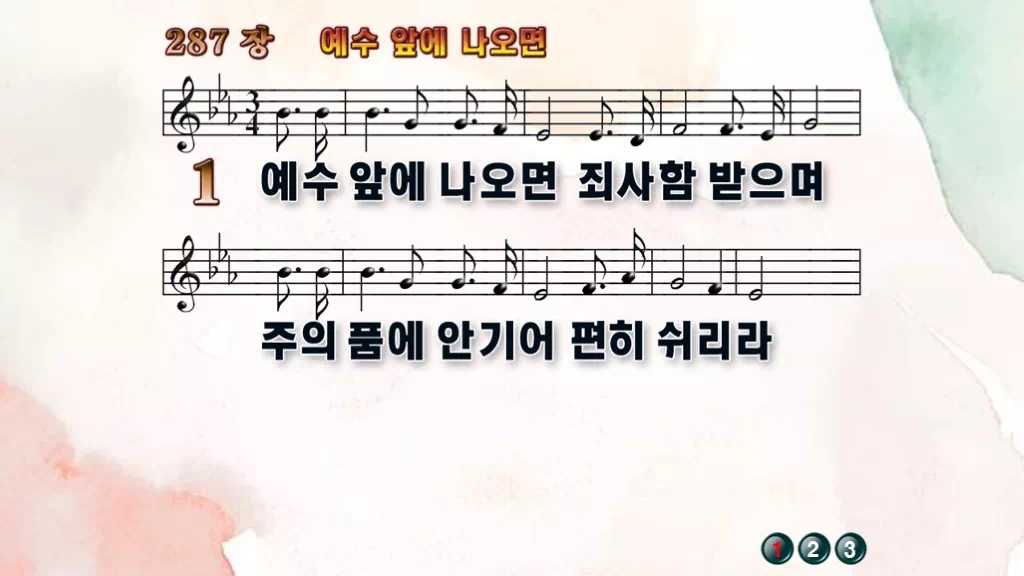 287장 - 예수 앞에 나오면 찬송가의 PPT 악보입니다.