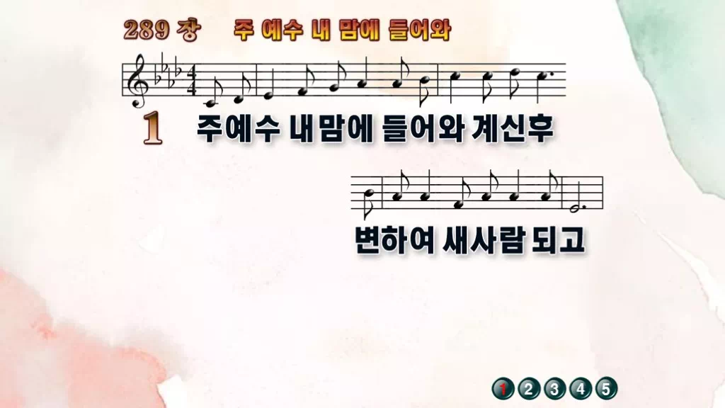 289장 - 주 예수 내 맘에 들어와 찬송가의 PPT 악보입니다.