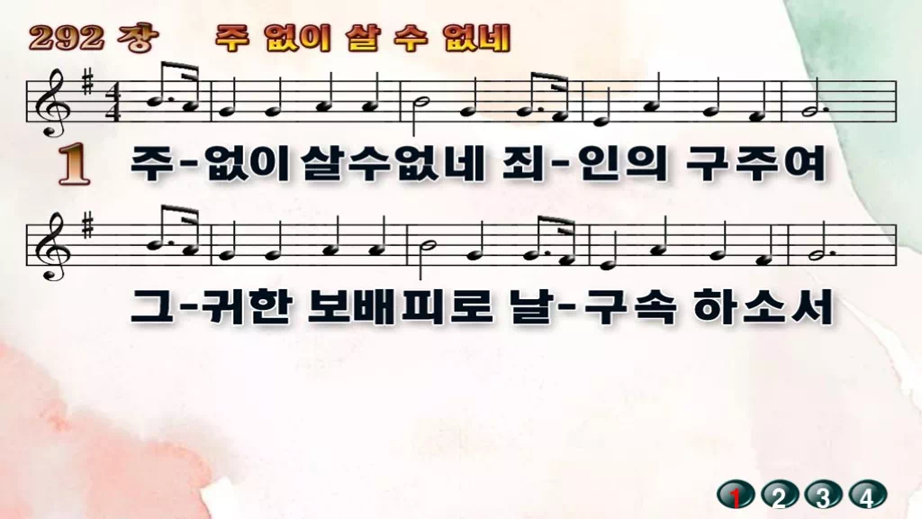 새찬송가_PPT] 292장 - 주 없이 살 수 없네(와이드/16:9)
