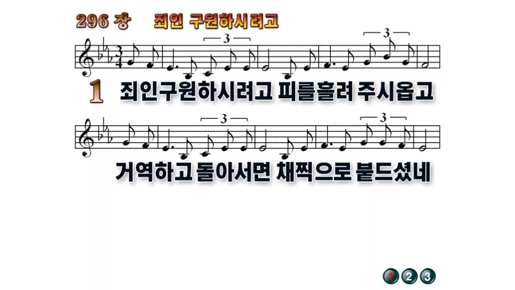296장 - 죄인 구하시려고 찬송가의 배경없는 PPT 악보입니다.