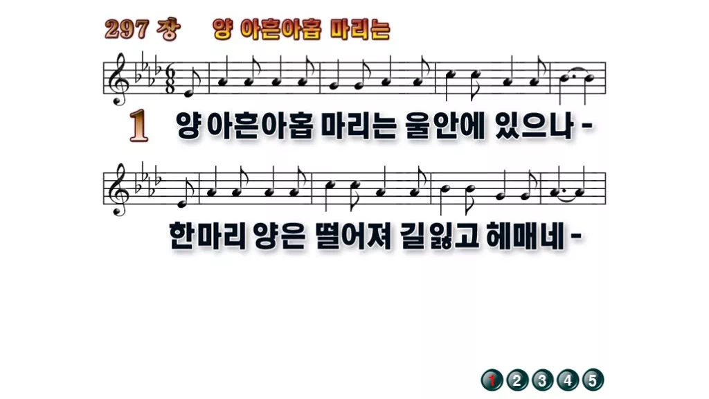 297장 - 양 아흔아홉 마리는 찬송가의 배경없는 PPT 악보입니다.