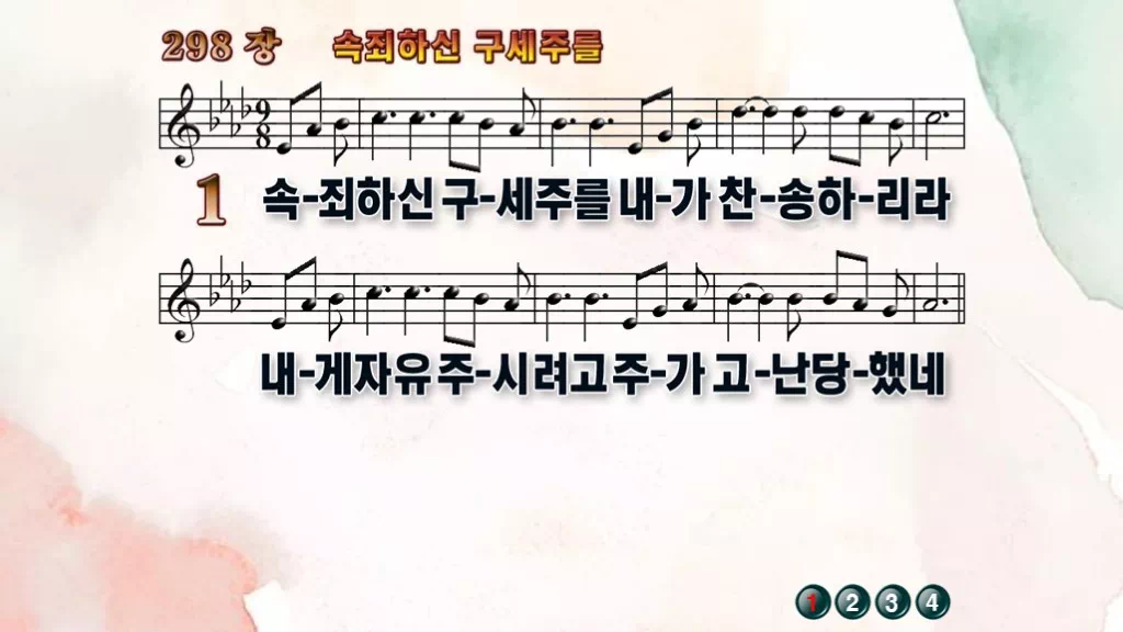 298장 - 속죄하신 구세주를 찬송가의 PPT 악보입니다.