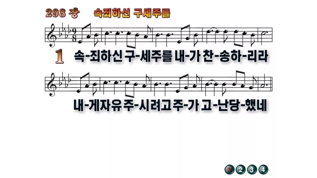 298장 - 속죄하신 구세주를 찬송가의 배경없는 PPT 악보입니다.