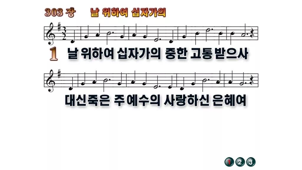 303장 - 날 위하여 십자가의 찬송가의 배경없는 PPT 악보입니다.
