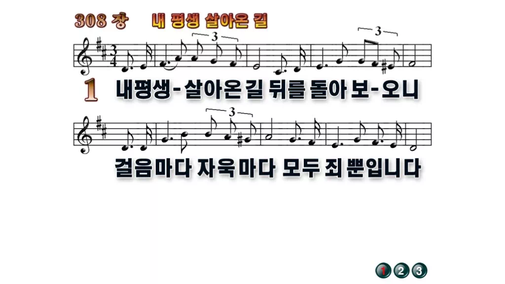 308장 - 내 평생 살아온 길 찬송가의 배경없는 PPT 악보입니다.