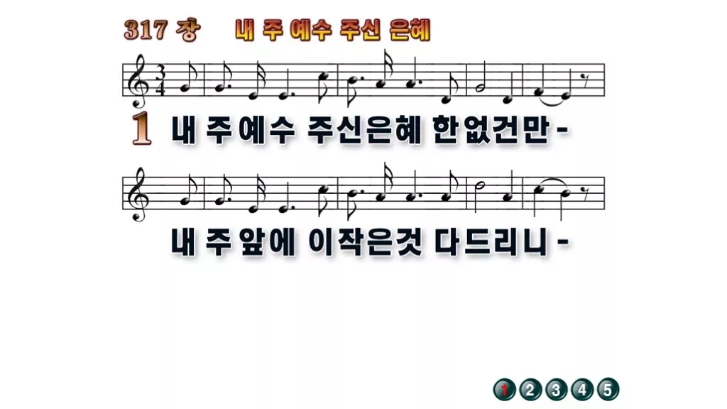 317장 - 내 주 예수 주신 은혜 찬송가의 배경없는 PPT 악보입니다.