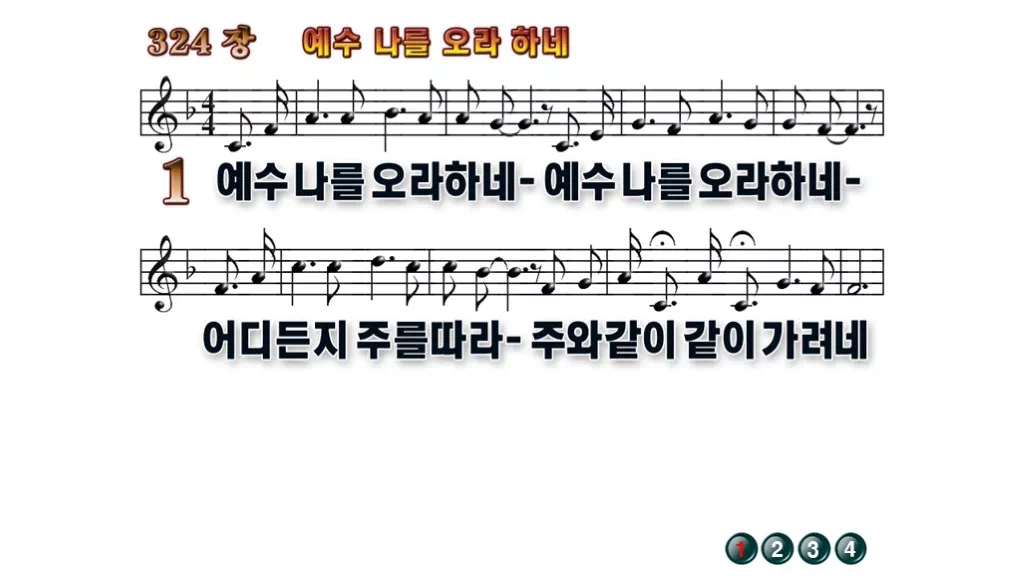 324장 - 예수 나를 오라 하네 찬송가의 배경없는 PPT 악보입니다.