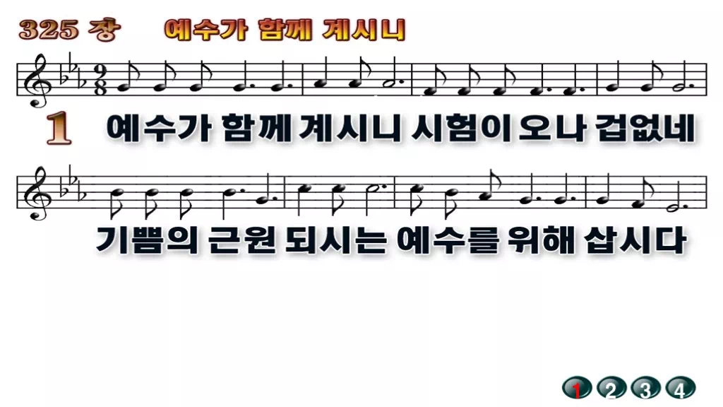 325장 - 예수가 함께 계시니 찬송가의 배경없는 PPT 악보입니다.