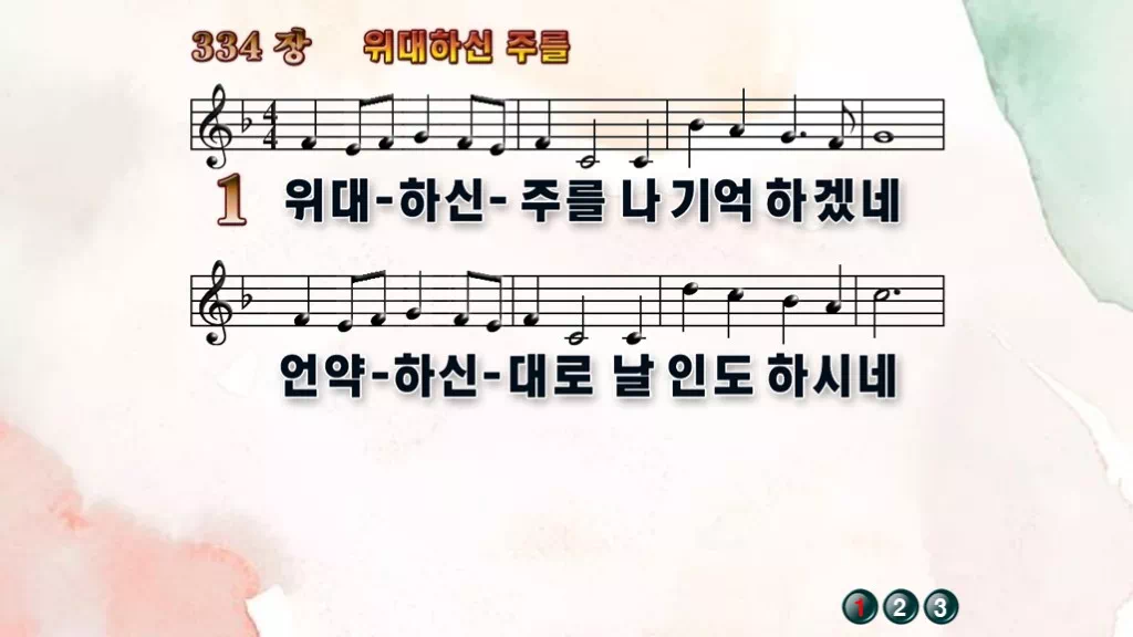334장 - 위대하신 주를 찬송가의 PPT 악보입니다.