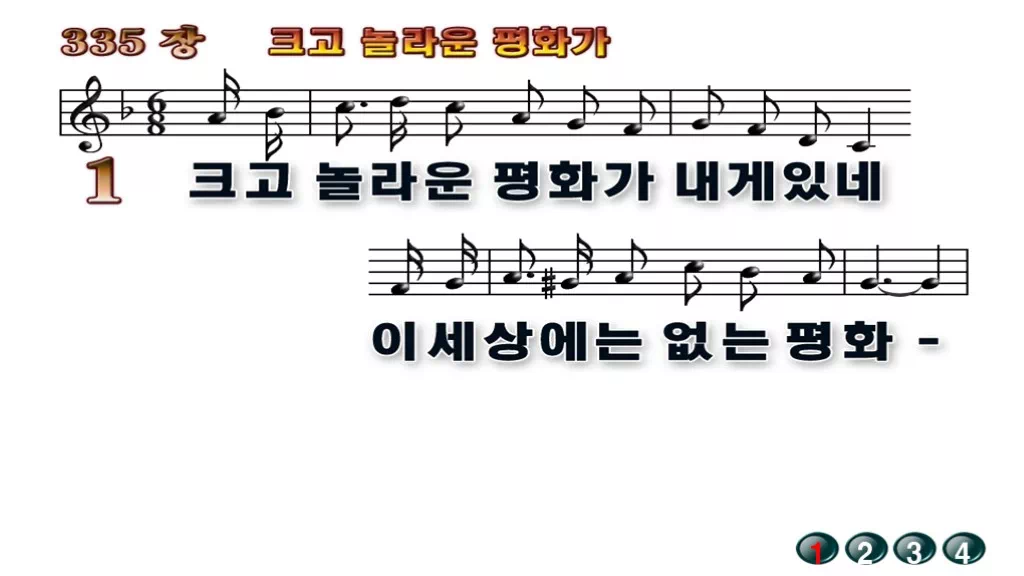 335장 - 크고 놀라운 평화가 찬송가의 배경없는 PPT 악보입니다.