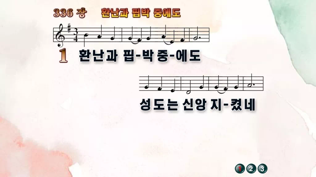 336장 - 환난과 핍박 중에도 찬송가의 PPT 악보입니다.