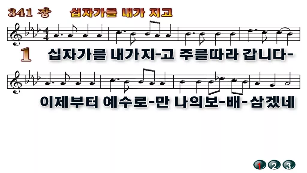 341장 - 십자가를 내가 지고 찬송가의 배경없는 PPT 악보입니다.