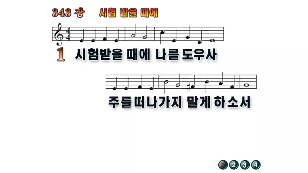 343장 - 시험 받을 때에 찬송가의 배경없는 PPT 악보입니다.