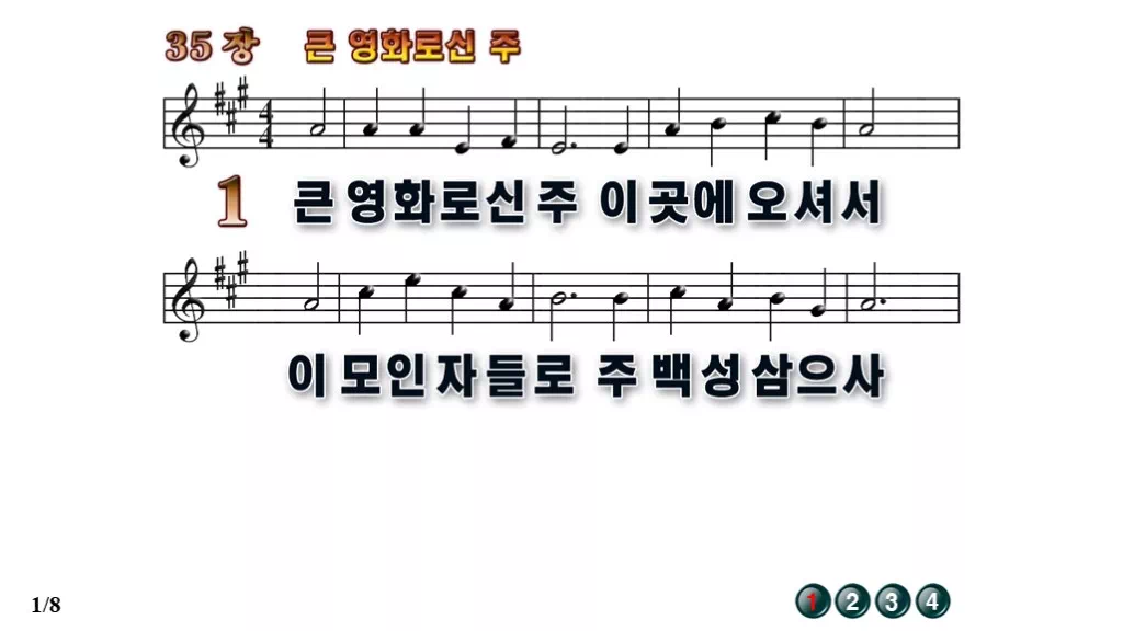 35장 - 큰 영화로신 주 찬송가의 배경없는 PPT 악보입니다.
