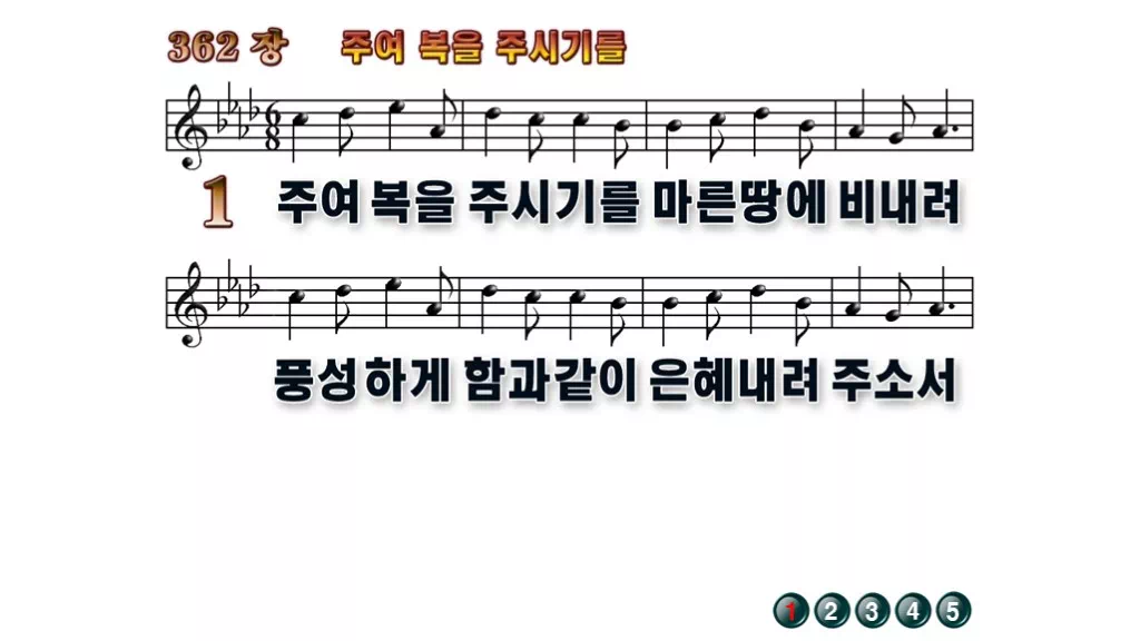 362장 - 주여 복을 주시기를 찬송가의 배경없는 PPT 악보입니다.