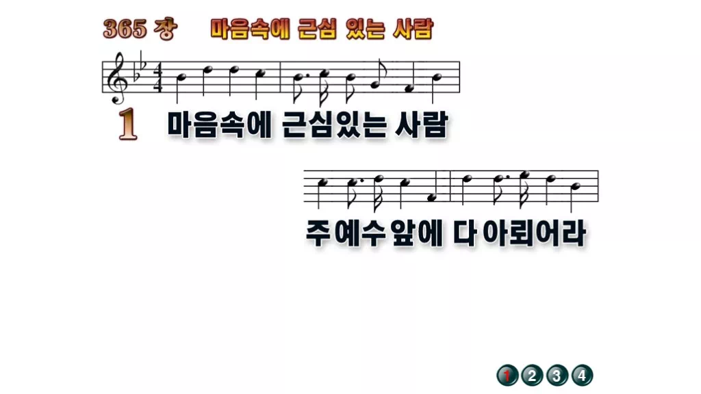 365장 - 마음속에 근심있는 사람 찬송가의 배경없는 PPT 악보입니다.